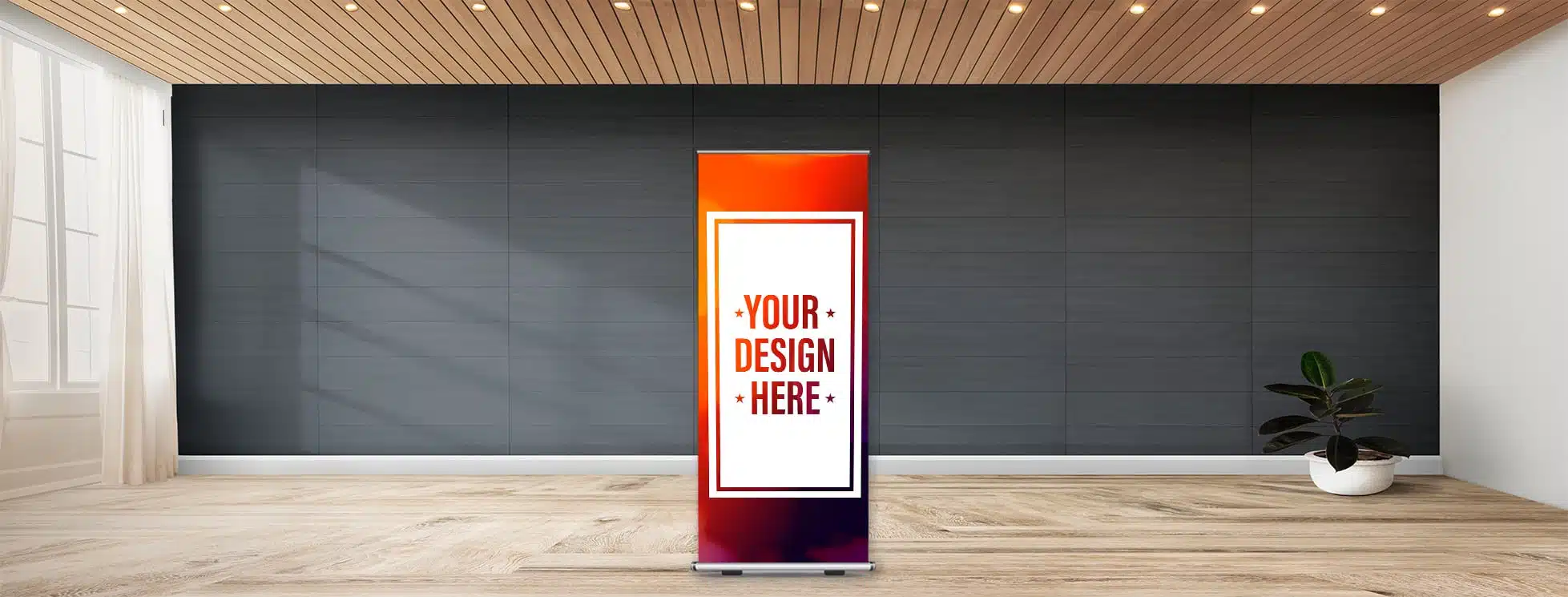 Suunnittele 85cm x 200cm kokoinen roll up ja toimita tiedosto kätevästi meille joko sähköpostitse, tai myymälään paikan päälle. Valmistamme roll upit kätevästi Helsingin rautatieaseman pisteellä ja täällä saamme valmistettua roll up:n jopa seuraavaksi arkipäiväksi. Roll up kulkeutuu myös meidän muihin liikkeisiin veloituksetta 1-2 arkipäivässä.